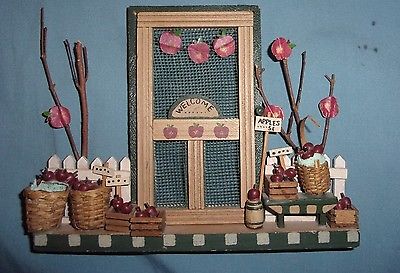 primitive decor APPLE STAND WITH COUNTRY SCREEN DOOR/APPLES VILLAG