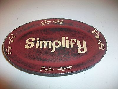 Primitive Burgundy Wood Plate SIMPLIFY 5" Country Home Decor Oval