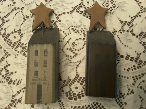 Title (ebay affiliate link): Set of two primitive wooden houses, star, patriotic, shelf sitter, ornie