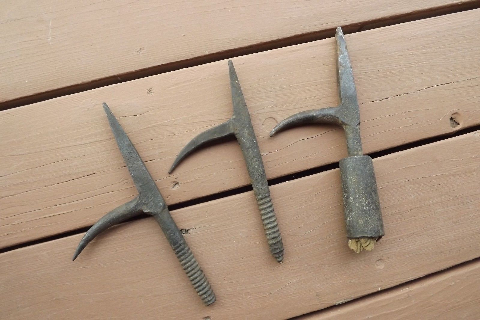 3-wrought iron hooks, points