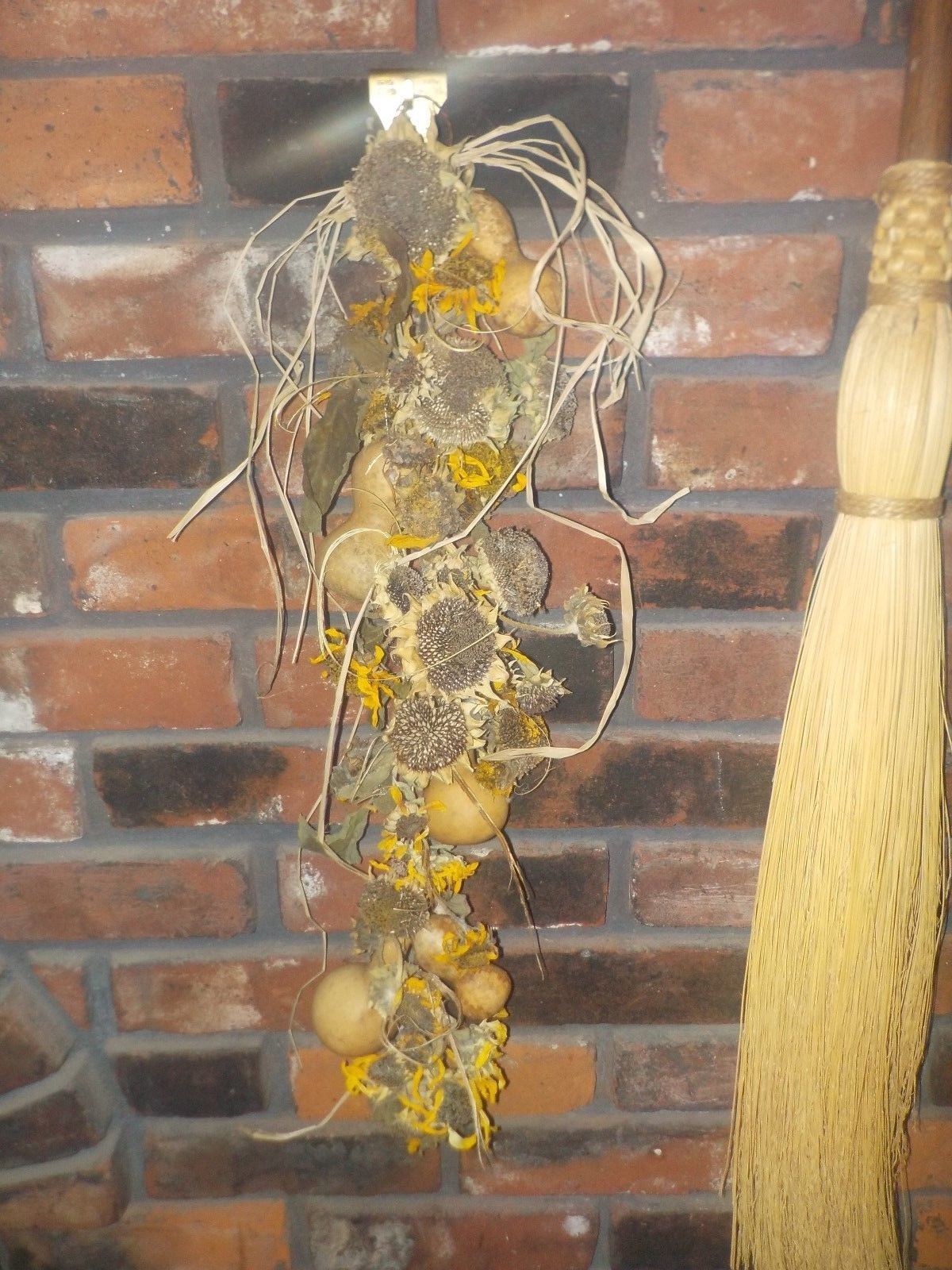 Title (ebay affiliate link): PRIMITIVE STYLE DRIED SUNFLOWER AND BOTTLE GOURD GARLAND-2 ft LONG-FALL DECOR