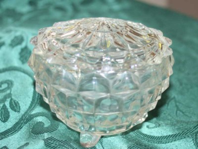 JEANNETTE GLASS CO. CUBIST COVERED GLASS POWDER