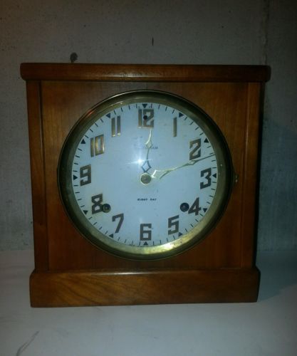 Title (ebay affiliate link): Antique Arts & Crafts Mission Oak Ingraham 8 Day Mantel Clock Double Key Wind