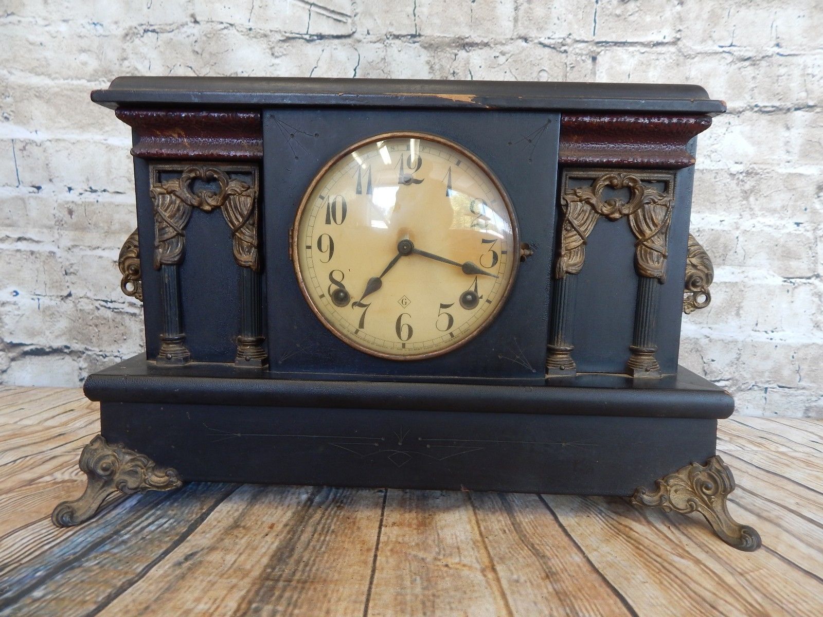 Title (ebay affiliate link): Antique Gilbert Mantle Clock ~ Vintage Primitive Shabby Decor Parts Restore 5173