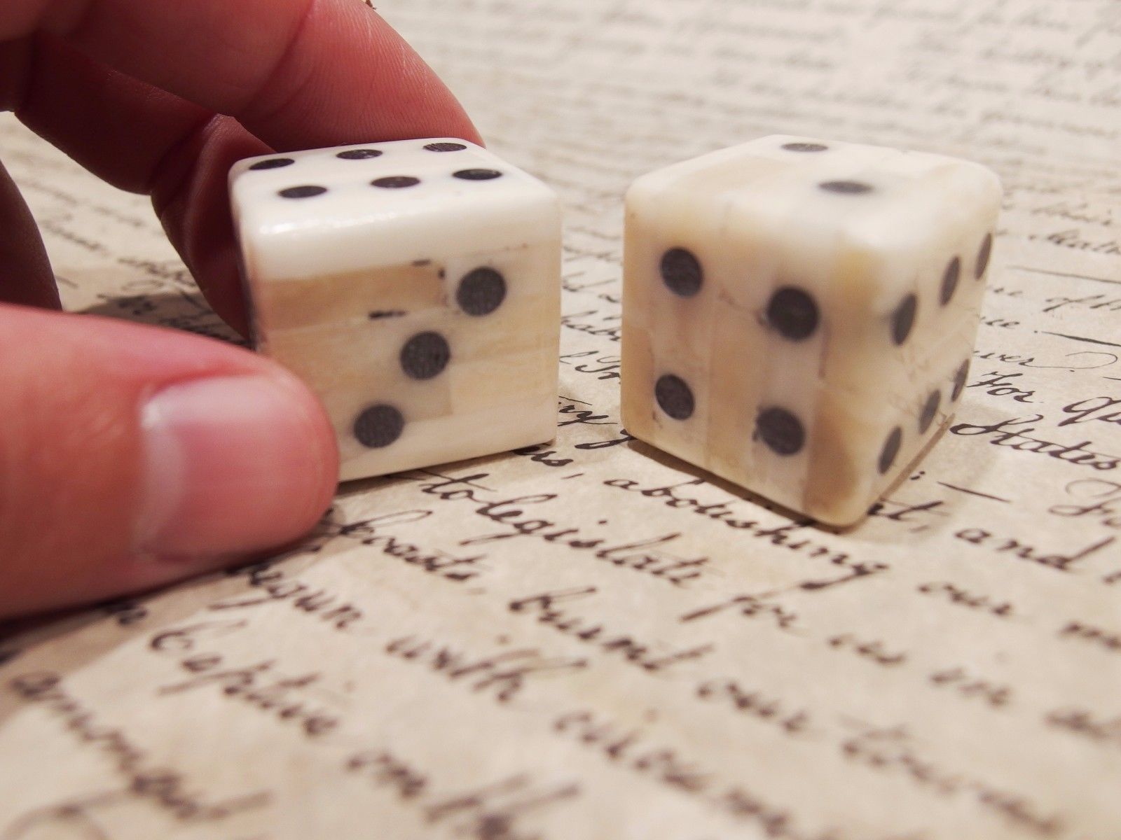 Title (ebay affiliate link): 2 1" Antique Style Genuine Bone Gambling Handmade Dice Inlaid Pips Casino Game