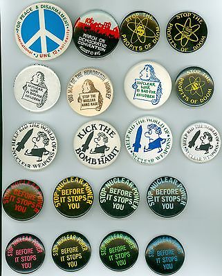 Title (ebay affiliate link): 20 Vintage 1980s Anti-Nuclear Pinback Buttons Stop Nuclear Before It Stops You