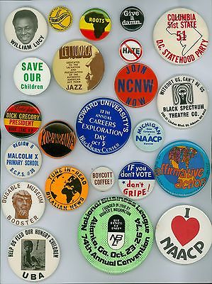 Title (ebay affiliate link): 24 Vintage 1970-80's Black Social Justice Pinback Buttons - Dusable Museum