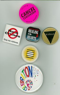 6 Vintage 1980-90's Gay Rights Pride Cause Pinback Buttons - Cancel Censorship