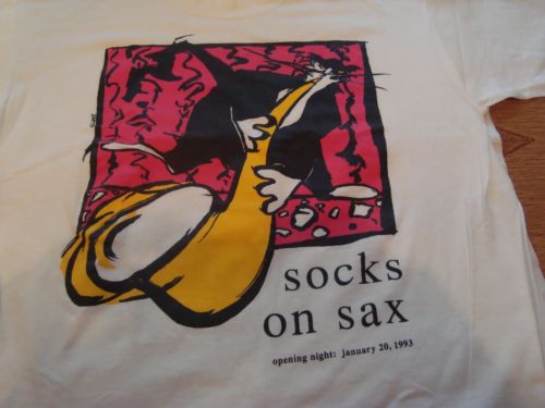 Title (ebay affiliate link): VINTAGE 1993 PRESIDENT BILL CLINTON WHITE HOUSE CAT "SOCKS ON SAX" T-SHIRT,NEW