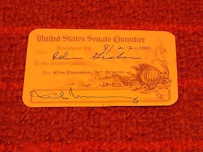 1961 U.S. Senate Visitor's Pass Signed by A.S. Mike Monroney Oklahoma