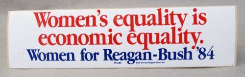 Title (ebay affiliate link): WOMEN'S EQUALITY IS Economic Equality REAGAN BUSH '84 ORIGINAL BUMPER STICKER