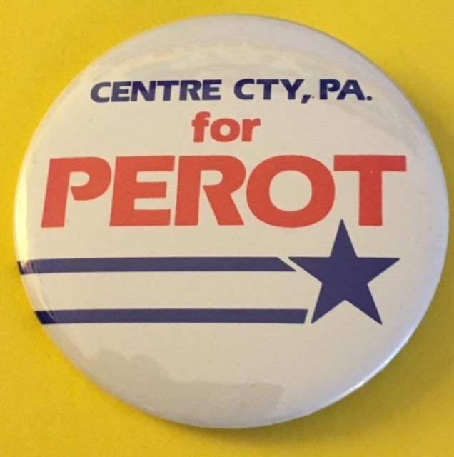 Title (ebay affiliate link): Centre Cty, PA Perot 2 1/4 Inch Political Campaign Pin Pinback Button