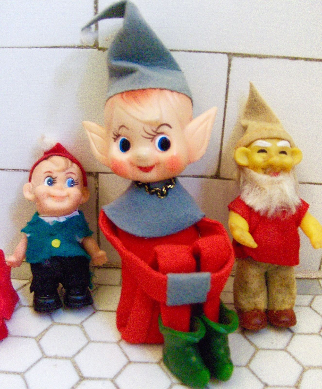 Title (ebay affiliate link): Vintage 40s 50s ELF Gnome LOT KNEE Hugger Christmas Pixie Felt Ornament ORG GC