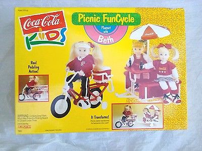 Title (ebay affiliate link): COCA COLA KIDS 1993 ERTL PICNIC FUNCYCLE PLAYSET WITH BETH