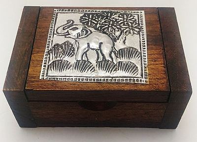 HANDMADE TEAK WOOD ELEPHANT THAI CRAFT Jewelry NECKLACE BOX Vintage Top Silver7