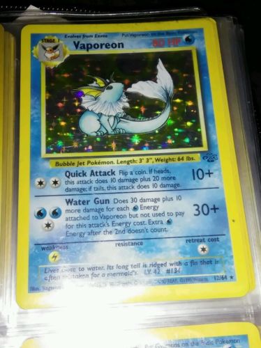 Title (ebay affiliate link): Vaporeon Pokemon Card - Rare Holo 12/64 Jungle