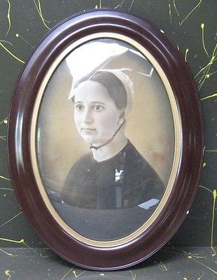 Older Mennonite Woman Picture in Convex Glass Frame, Oval