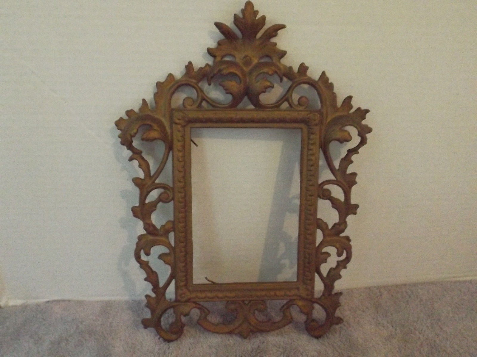 Early American Antique Victorian Cold Cast Iron Open Leaf & Scroll Picture Frame