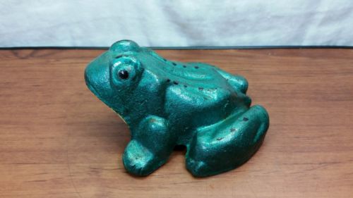 Vintage 1950's Green Bull Frog Cast Iron Door Stop Original Paint