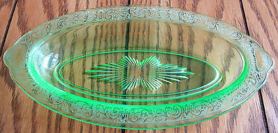 Vintage Vaseline Green Depression Glass OVAL CANDY NUT DISH TRAY Etched Design