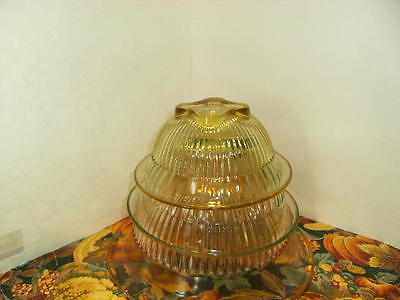 Nesting Bowls 3 Depression Glass Ribbed Mixing Kitchenware, pink, green, yell