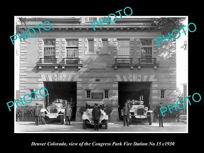 OLD LARGE HISTORIC PHOTO OF DENVER COLORADO, CONGRESS PARK FIRE STATION c1930