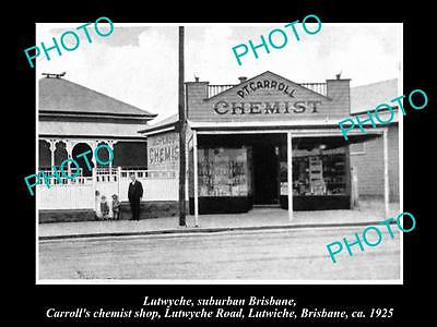 OLD LARGE HISTORIC PHOTO OF LUTWYCHE BRISBANE QLD, CARROLLS CHEMIST SHOP c1925