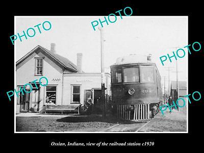 OLD LARGE HISTORIC PHOTO OF OSSIAN INDIANA, VIEW OF THE RAILROAD STATION c1920