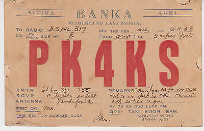 Title (ebay affiliate link): QSL card PK4KS Banka Netherlands East Indies 1938 mailed with stamp