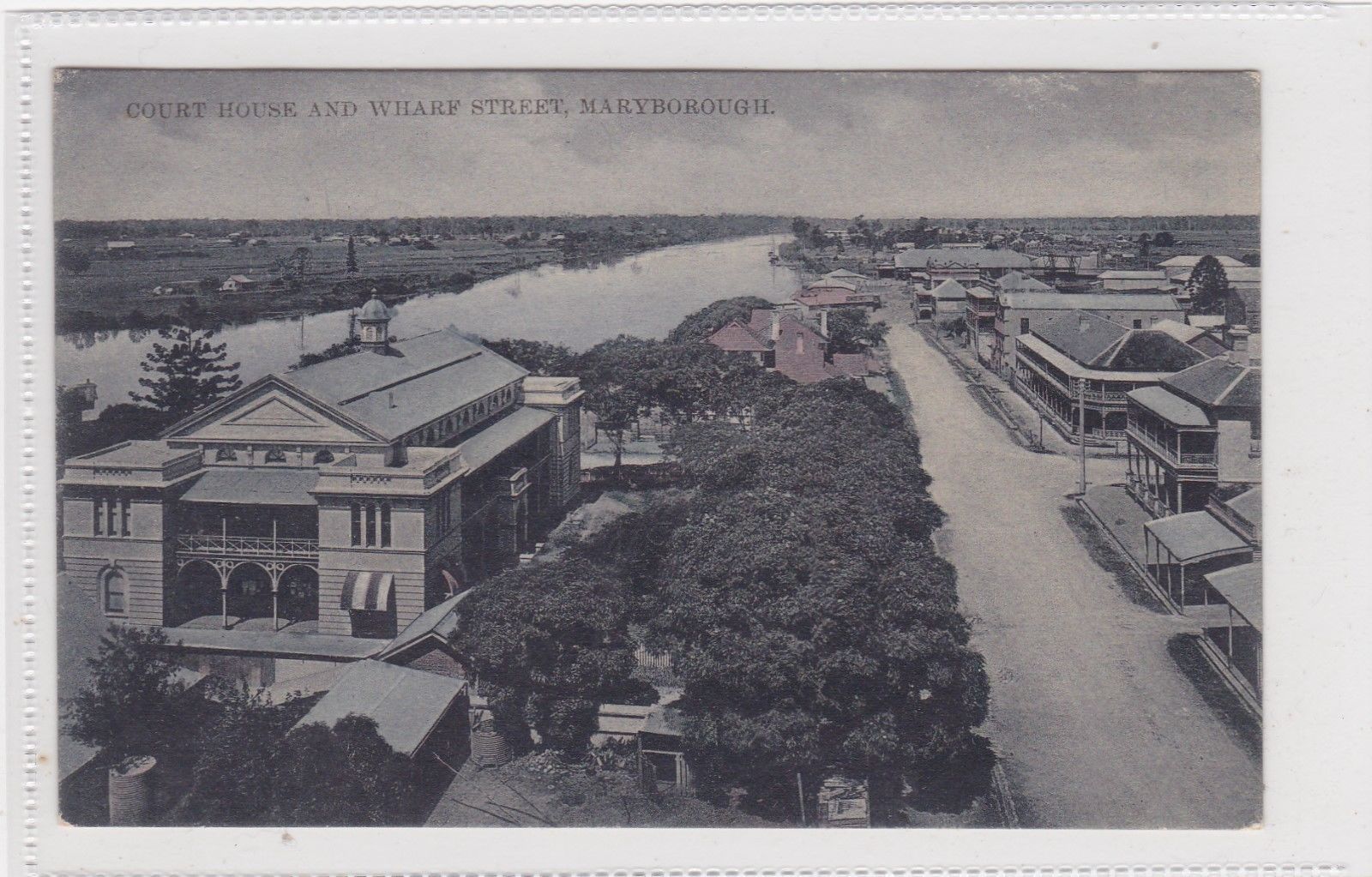 VINTAGE POSTCARD COURT HOUSE AND WHARF ST MARYBOUROUGH QLD 1900s