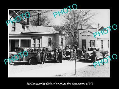 OLD LARGE HISTORIC PHOTO OF McCONNELSVILLE OHIO, FIRE DEPARTMENT STATION c1940