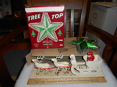 antique Christmas tree top W/ Box and Santa Sleigh W/ 2 Raindeer