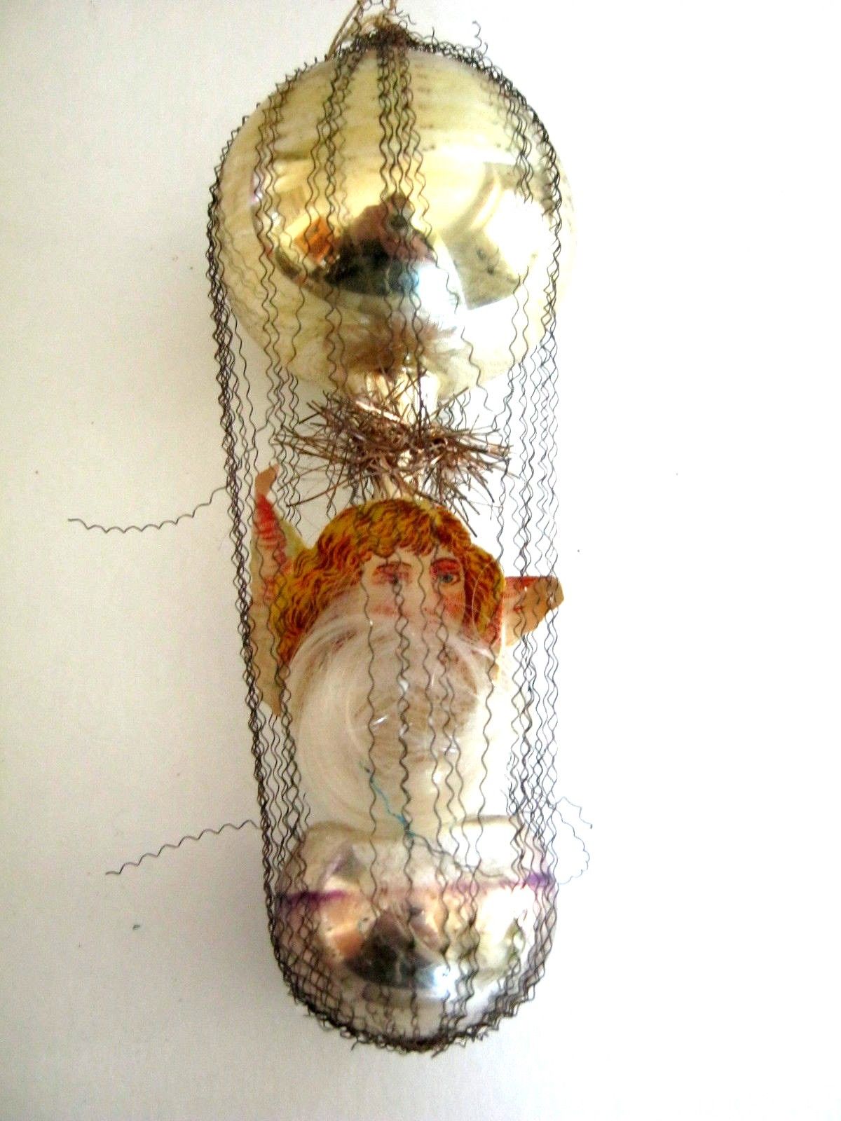 Title (ebay affiliate link): ANTIQUE CHRISTMAS ORNAMENT, DOUBLE BALLOON, WIRE WRAPPED, SCRAP ANGEL, SPUN GLA