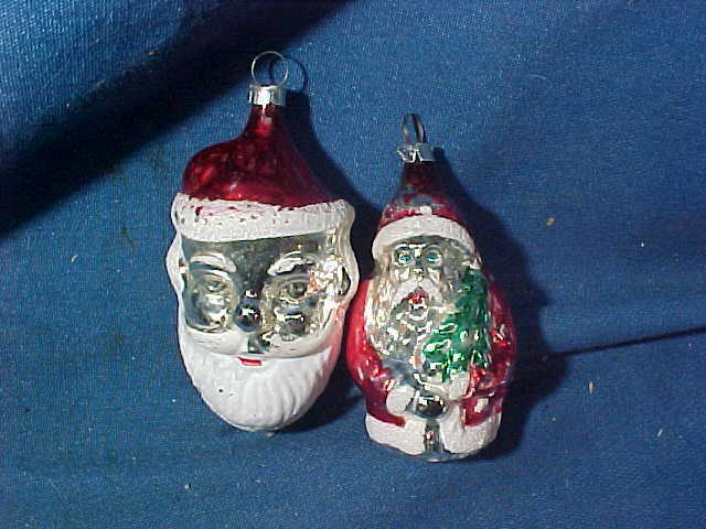2-1930s CHRISTMAS Tree ORNAMENTS Glass SANTA CLAUS Figures