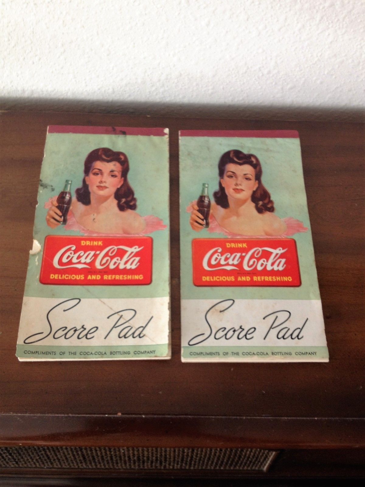Title (ebay affiliate link): TWO(2) VINTAGE COLLECTIBLE DRINK COCA COLA DELICIOUS AND REFRESHING SCORE PADS