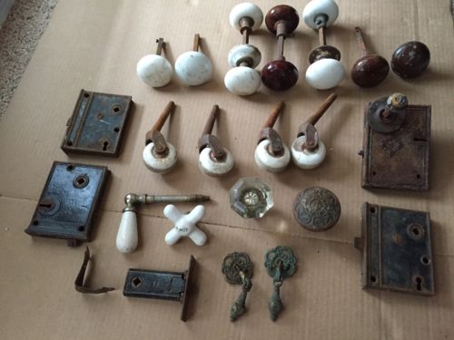 Title (ebay affiliate link): Box Lot Antique Door Knobs Casters Porcelain Metal Wood Clay