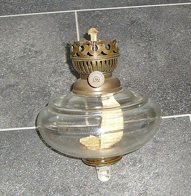 OLD GLASS OIL LAMP FONT WITH BURNER