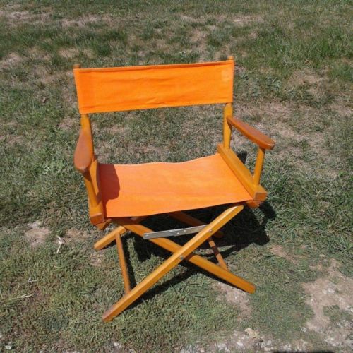 Title (ebay affiliate link): VINTAGE MID CENTURY GOLD MEDAL WOOD FOLDING DIRECTOR CHAIR ORANGE SEAT/BACK