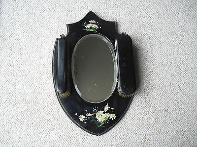 Antique Victorian papier mache hanging hall mirror with clothes brushes