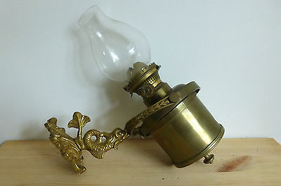 Vintage Gimballed, Brass Bulk Head Oil Lamp, with Dolphin Figure Fixing Bracket.