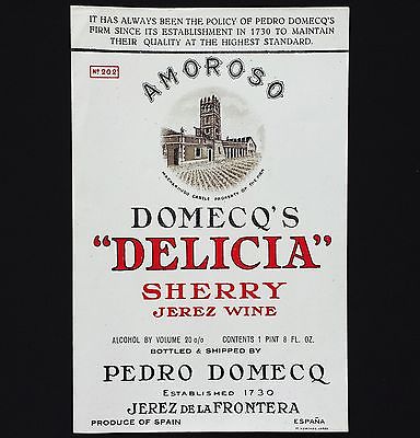 Amoroso Domecq's Delicia Sherry Jerez Wine Vintage Old Label Etiquette Spain