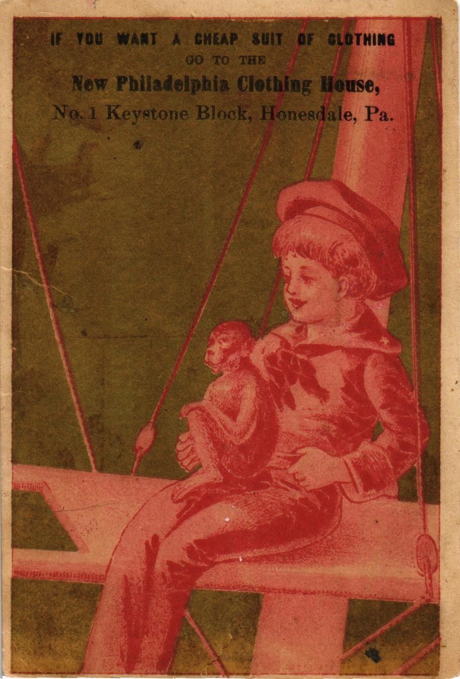 Title (ebay affiliate link): DR JIM STAMPS US VICTORIAN TRADE ADVERTISING CARD PHILADELPHIA CLOTHING HOUSE