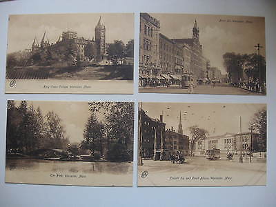 Worcester, MA- 4 Vintage Postcards-Holy Cross-Front St.-Elm Park-Lincoln Sq.-New