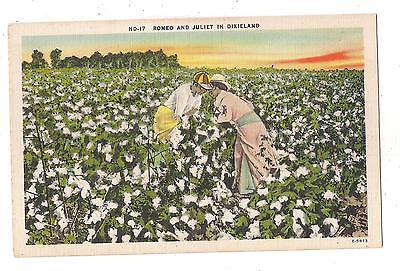 Title (ebay affiliate link): Linen Postcard-Black Romeo & Juliet Smooching in Dixieland Cotton Field-1940's