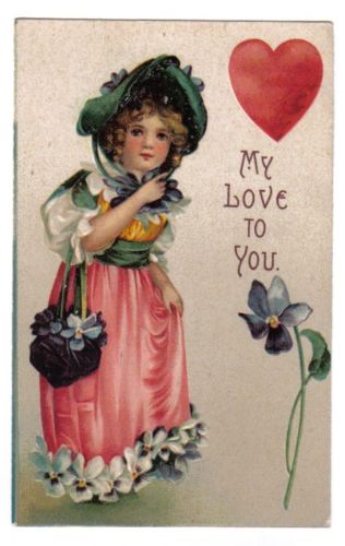 Title (ebay affiliate link): Woman Wearing Flower Decorated Dress & Hat~My Love To You~Valentine~1908