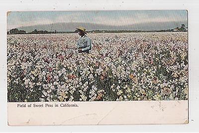 UDB Postcard-Black American Worker & Field of Sweet Peas in CA in 1906-VF