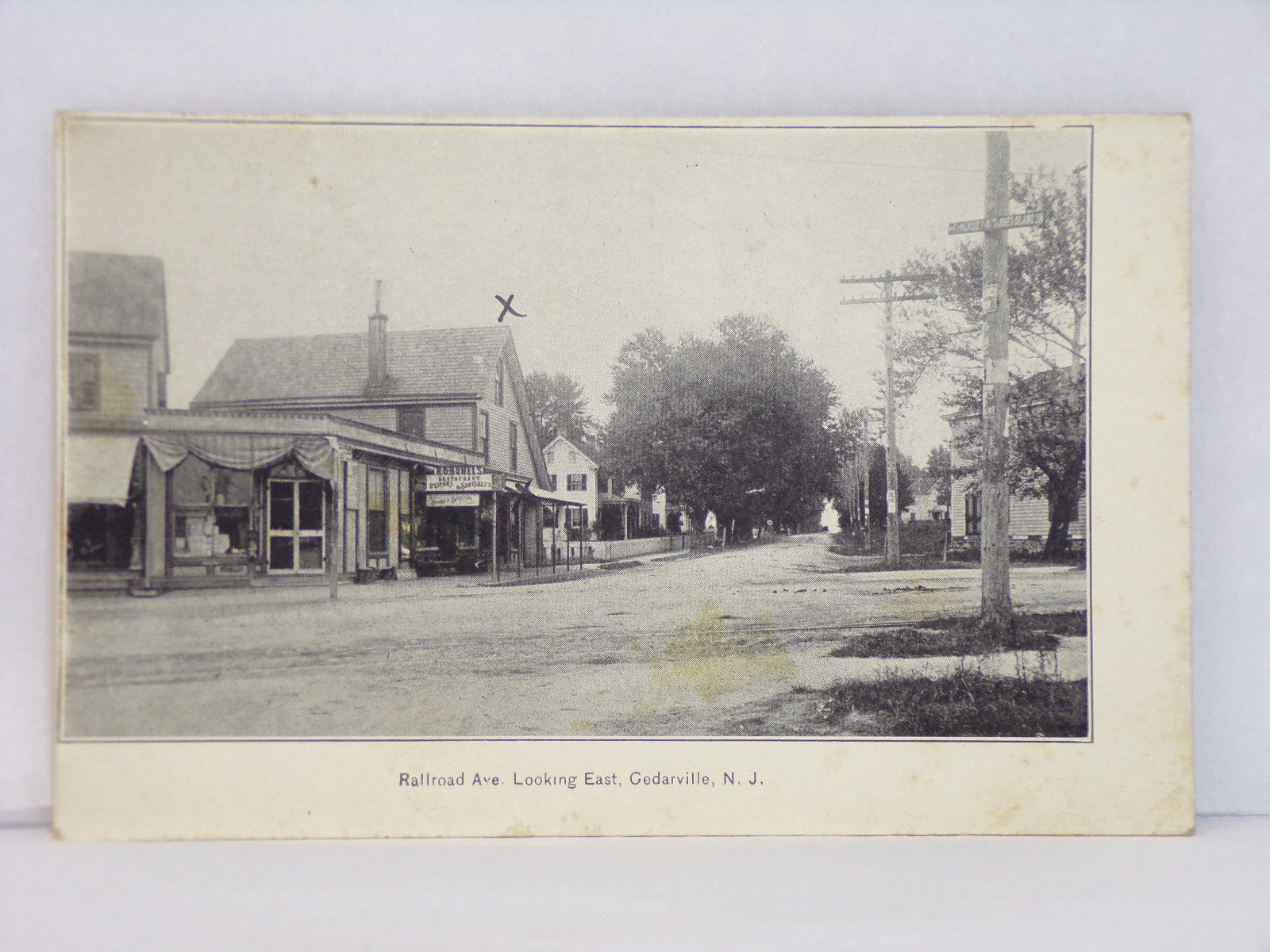 Title (ebay affiliate link): 1906 CEDARVILLE NJ - RAILROAD AVE TOWN VIEW - RESTAURANT B&W Postcard SHEPPARD