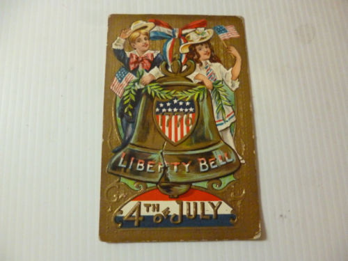 Title (ebay affiliate link): 4th of July Antique 1909 Post Card Embossed Liberty Bell Children & Flags