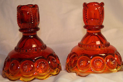 Title (ebay affiliate link): Moon and Stars Red Depression Glass Candle Holders