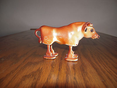 Celluloid Walking Bull Cow old hard plastic Toy 4 " long 2 1/2' high Hong Kong